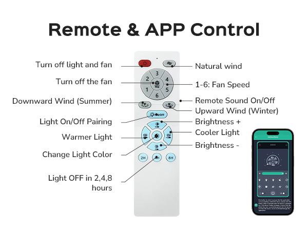 EASY TO INSTALL & USE: With just a screwdriver, you can easily install this modern ceiling fan light in less than 30 minutes by following clear instructions included in the package. The remote and app control options provide complete convenience, allowing you to control the fan’s on/off function, fan speeds, light colors and brightness, summer/winter reverse, and 2H/4H/8H timers.
