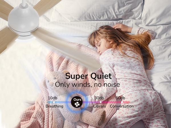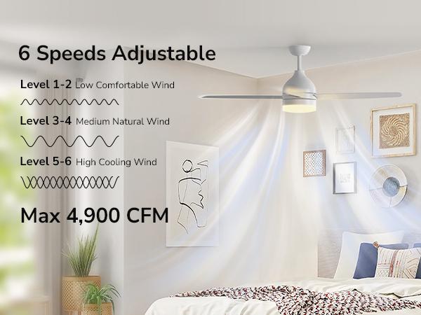 6-SPEED QUIET WINDS: Easily select your fan speed with the remote or your phone, ranging from gentle breezes to strong cooling gusts, suitable for activities like sleeping, reading, or exercising. Even at the highest speed, the fan operates quietly, producing just the sound of the wind without any noise—whisper-quiet.