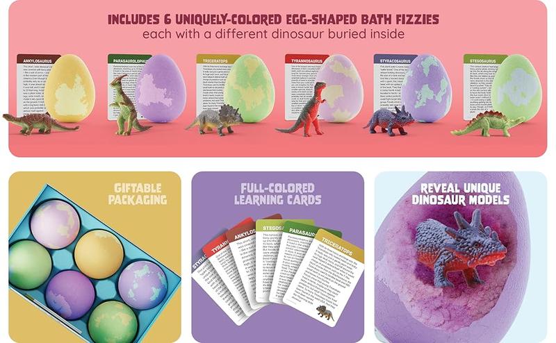 Dan&Darci Surprise Dinosaur Egg Kit - Kids Water Activity Toy with Dino Figures inside Bath Bombs Fun STEM Learning Game