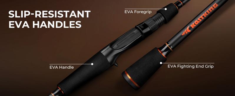 - Lightweight & Comfortable Design: The KastKing Brent Chapman baitcasting rod features a lightweight, sensitive IM6 carbon fiber composite blank (7'0") with medium-heavy power, offering precise casts and enhanced bite detection. Its two-piece design enhances portability without sacrificing strength. The ergonomic EVA handle ensures a secure, non-slip grip, providing comfort and control in various fishing conditions.