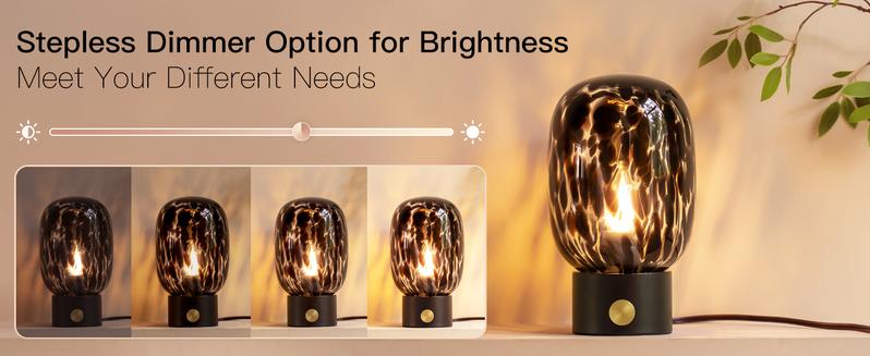 [Free Dimmable Bulb Included] The vintage table lamp comes with an E26, 2700K incandescent bulb for your convenience. The bulb and special glass design ensure soft, uniform lighting throughout the room without flickering or glare, effectively protecting your eyes. Perfect for any space where gentle lighting is desired.