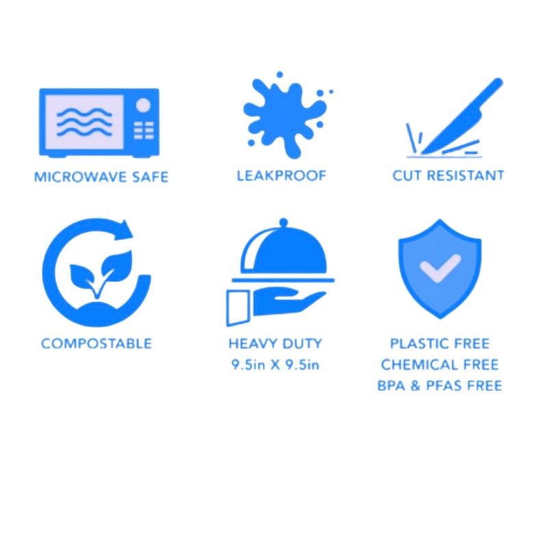 Fully soakproof, microwavable, compostable, slice-resistant & non-stick.